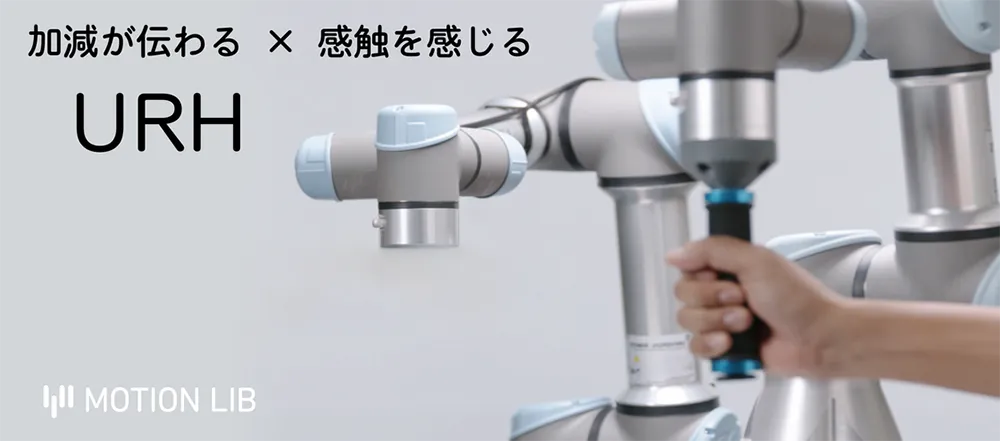 感触伝送製品URHは、モーションリブ※が最先端技術で実現した、感触伝送が可能な協働ロボット用遠隔化・自動化ユニットである。ロボットが接触した時に感触が手元に伝わるため、安全かつ簡単にロボットの遠隔操作や自動化を実現。力触覚技術の活用シーンを“遠隔操作”から“自律的な自動化”へと大きく広げることが可能となった。