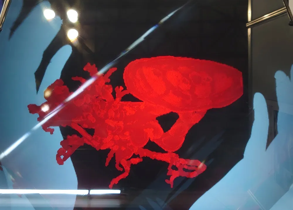 そしてその隣にあるのが、より大型化した空中ディスプレイ。こちらは実際の患者さんの腎臓のモデルが映し出されている。この「血管造影手技支援モニター」システムは、信州大学医学部医療データサイエンス講座 山田哲先生指導の下、MIRAI BAR株式会社、株式会社ケーアンドケーと共に共同開発した製品だ。当初は医学生の実習などで、従来のマウスやタッチパネルでの研修よりも3Dの方が理解促進につながると期待されて製作されたが、今後は臨床への展開も臨んでいる。具体的には患者さんの寝ている上に映像を出し、それを見ながらカテーテルの手術ができるようなものがイメージされており、今回の大型ディスプレイは実際の手術で必要な大きさを想定した結果だそうだ。今回の展示で、よりその実現可能性が目の当たりにできるだろう。またその他、医療現場だけでなく、デジタルサイネージや、博物館での子供の知育分野の活用も期待できる。