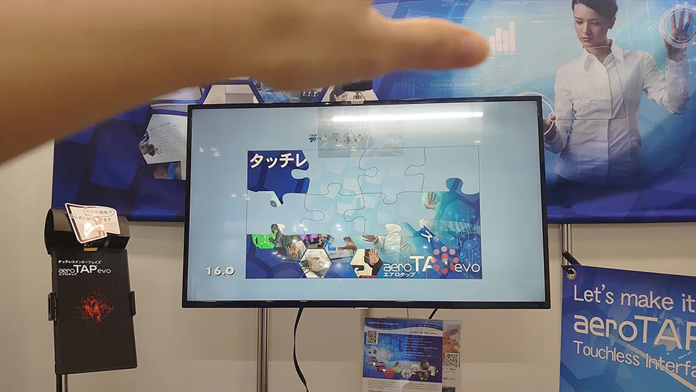 また独自3Dカメラを接続することで、既存のシステムを変更することなく、タッチレス化が可能になる「タッチレスインターフェイス aeroTAP evo」も体験可能だ。この触らないタッチパネルは、非接触でコンピュータを操作でき、モードを変更すれば50cmから2.5m離れた位置から手のひらでコンピュータを操作することもできる。専用のカメラとソフトを使用すればすぐに導入できるため、医療現場はもちろん、企業・家庭でも手軽に活用することができる。