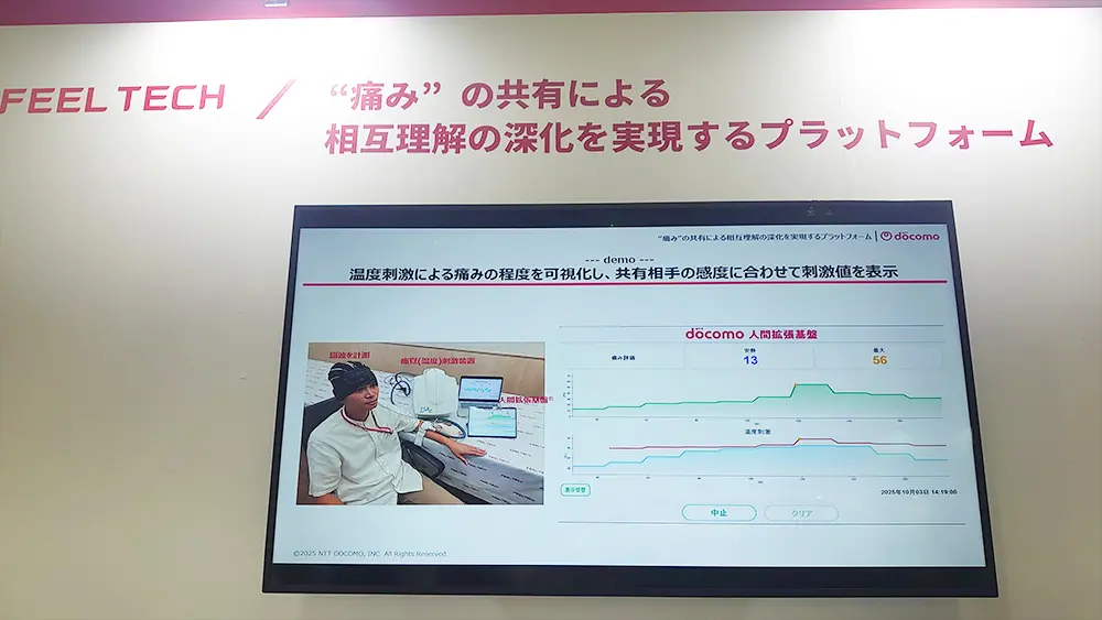 伝えたくても伝えることができなかった感動や感覚、記憶や体験…ドコモの「FEEL TECH」は、触れた感覚などの五感や心の動きのような感情など、言葉で伝えることが難しい対象を相手に合わせて共有できる新しい技術だ。相互理解のためにこれまでも動作、触覚、味覚の共有に取り組んできたが、今回も言語化が難しい「痛み」に着目した。相手の感じ方に合わせて痛覚を共有する技術の開発は世界初となる。