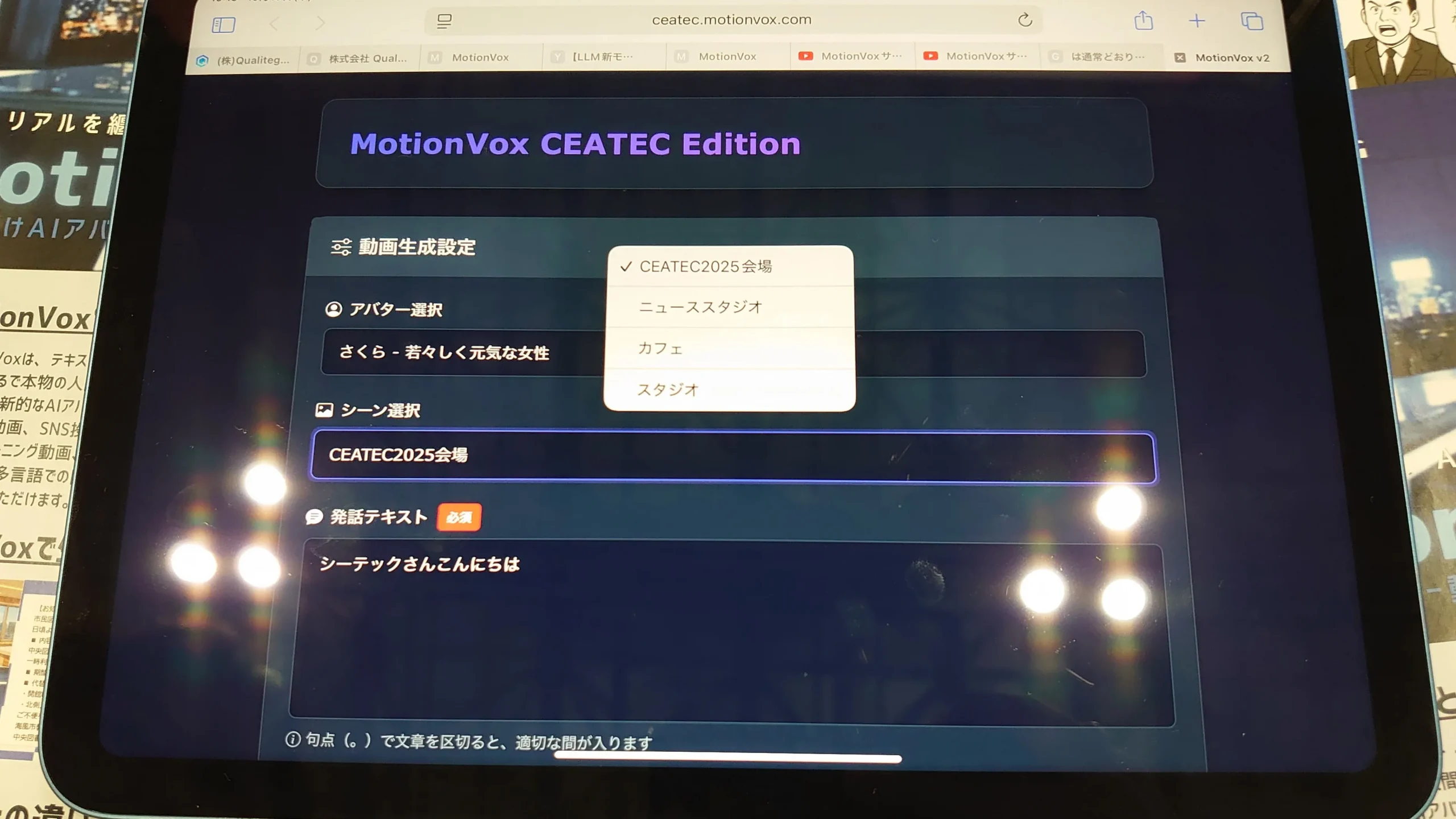 ブースでは実際に動画作成もできる。アバター選択、シーン選択をした後、好きな文章を入れるとすぐに動画作成される。気軽に体験できるので、ぜひ立ち寄ってみていただきたい。
