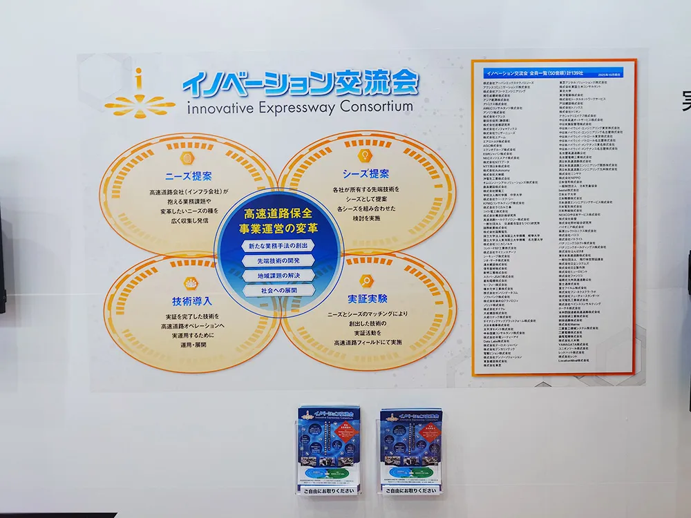 中日本高速道路株式会社(NEXCO中日本)は、高速道路保安事業運営の変革に向けてコンソーシアム方式によりオープンイノベーションを推進する組織として「イノベーション交流会」を2019年7月に設立。高速道路保全事業が抱える業務課題(ニーズ)と会員が保有する先端技術(シーズ)を組み合わせ、実証を行うことで新たな手法の創出・業務の高度化を実現し、広く社会に展開する。