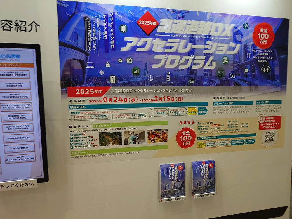 中日本高速道路株式会社(NEXCO中日本)はi-MOVEMENTというデジタルテクノロジーを使った革新的なプロジェクトを推進。今回のCEATEC 2025では「未来の高速道路保全管理の姿」というテーマに様々な取り組みについて出展した。