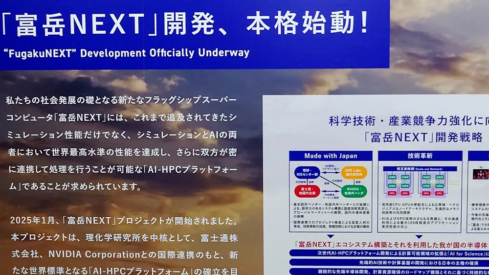 今年1月「富岳NEXT」プロジェクトが開始された。同プロジェクトは理化学研究所を中核として、富士通のCPU・システム化技術、NVIDIAのGPU技術とグローバルエコシステムを活用した三者連携で進められる。富士通は富岳から続けて全体システムやCPUの基本設計を担い、今回初めて採用されるGPUの設計にNVIDIA(エヌビディア)が参画する。